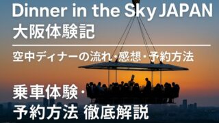 エンタメ Dinner in the Sky JAPAN大阪体験記|空中ディナーの流れ・感想・予約方法を徹底解説 大阪・心斎橋近辺で「空中食事体験」ができると聞き、私は思い切って に参加してみた。 地上40メートルで空中で回転しながら食事をとるという非日常性に強く惹かれたのがきっかけだ。今回の体験は約30分、比較的短時間だが、普段味わえない景色とスリル... 2025.10.17 エンタメ