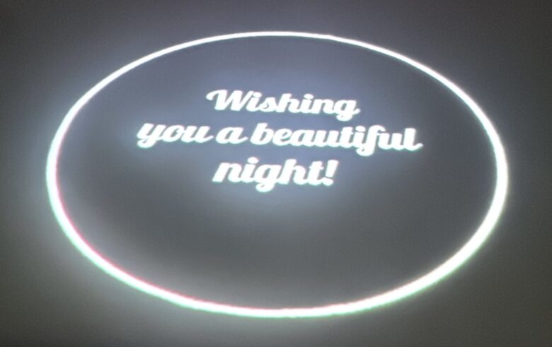 天井からのプロジェクションで、テーブルクロス代わりに世界観が広がっていく感じがすでに面白い。最初に映し出された「Wishing you a beautiful night!」のメッセージも、これから始まるディナーへの期待を上げてくれました。