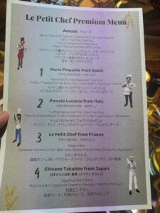 「ル・プチシェフ」は、テーブルに映像を投影しながらコース料理を楽しむ体験型ディナーです。小さなシェフたちが卓上を動き回り、料理が出てくる前から物語が始まるのが特徴。今回体験したのは、国ごとのストーリー展開を楽しみながら料理が提供されるプレミアムメニューで、スペイン、イタリア、フランス、そして最後は日本へと流れていく構成になっていました。見ていて飽きないし、普通のレストランとはかなり違う体験ができます。