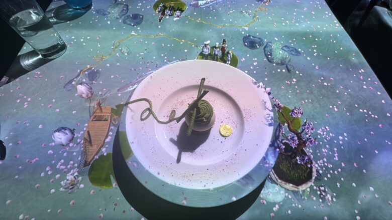 ただテーブルに映像を流しているだけではなく、料理が出てくる流れと演出が連動しているので、見ていてちゃんと楽しいです。