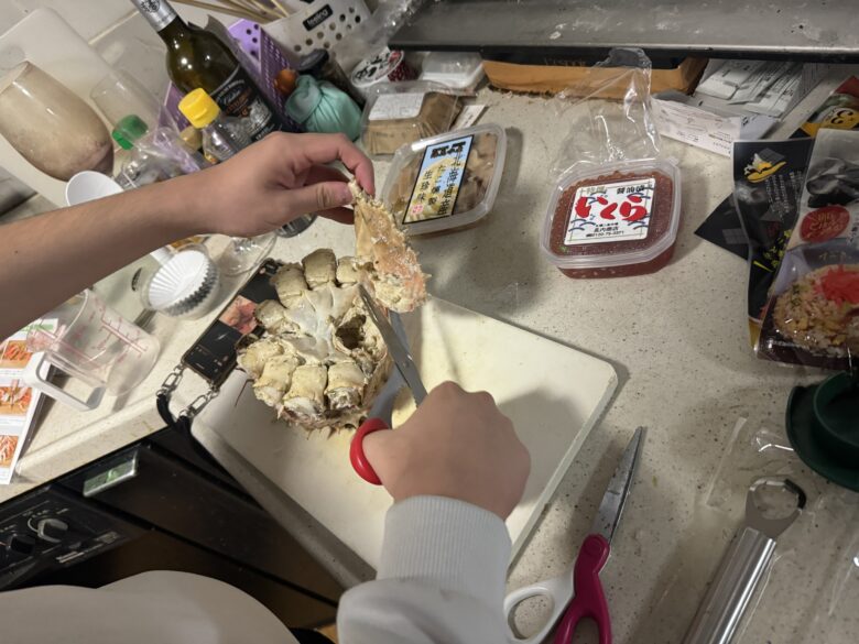 今回は二条市場で購入した新鮮なタラバカニを使って、家族で楽しく調理をしました。特に子供たちと一緒にカニを調理することで、料理の楽しさと食材への感謝の気持ちを学ぶ良い機会となりました。