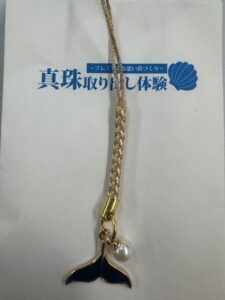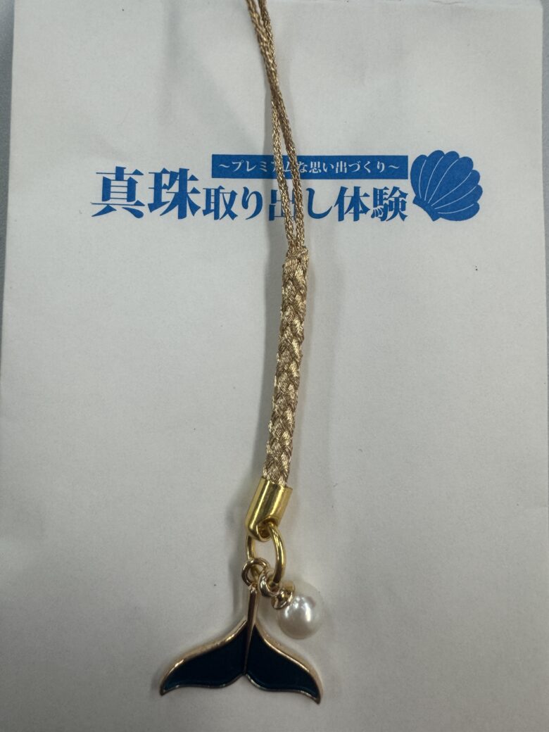 まず目を引いたのが、入口近くにある「真珠取り出し体験」コーナーです。実際にアコヤ貝から真珠を取り出す体験ができ、私も挑戦してみました。貝を開ける瞬間のドキドキ感、そして貝の中から出てきたまん丸で真っ白の真珠を見た瞬間は思わず歓声が出るほど感動!取り出した真珠はその場でストラップに加工してもらえ、旅の思い出として持ち帰れるのも嬉しいポイントです。