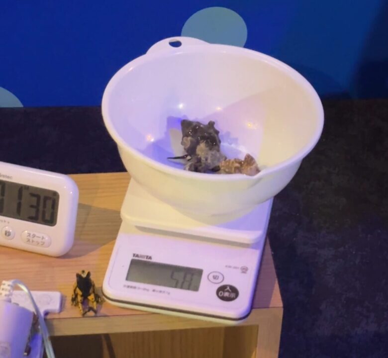 ちなみにやどかりは持ち帰ることはできず、つり上げたやどかりの重さに応じて景品と交換できます。 残念ながら自分は2匹で40グラムと3等のコースターでしたが 連れは58グラムで2等のぬいぐるみをもらえていました。