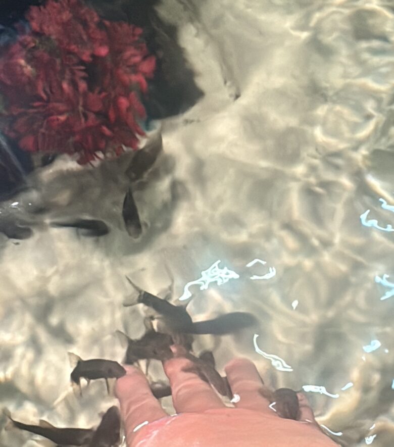 ドクターフィッシュ体験で手もツルツルに