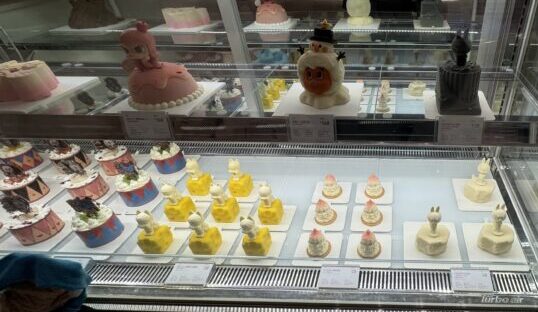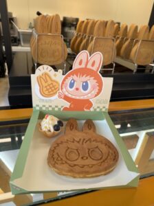 Labubu型のマカロンやMollyのカップ付きドリンクなど、キャラをモチーフにしたスイーツが豊富。