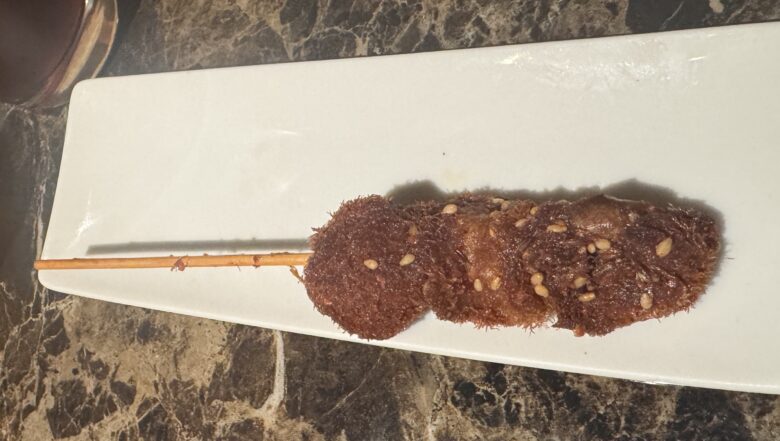 最初の前菜から、肉に見えるキノコで脳をバグらせて、串揚げでもう一回殴ってくる。